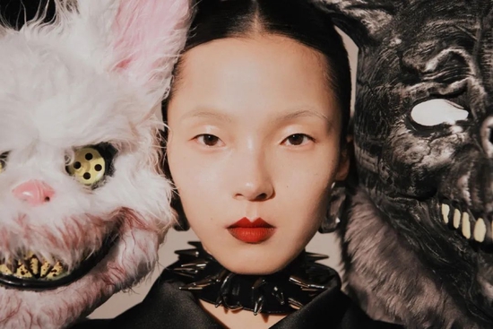 Balenciaga 2023′ s show can be described as bringing eyebrow-less makeup to the extreme. Not only do the eyebrows "disappear", but other makeup on the face is also covered by a mask made of black latex, and the mystery is directly filled.