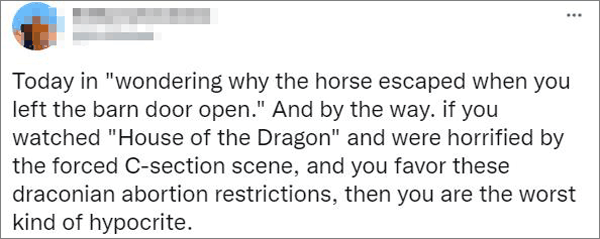 This picture really caused many viewers to think about the protection of abortion rights. Someone wrote on Twitter, "If you have seen" Dragon Family ",you are frightened by the forced caesarean section in it, and you are in favor of strict abortion restrictions, then you are the worst hypocrite."