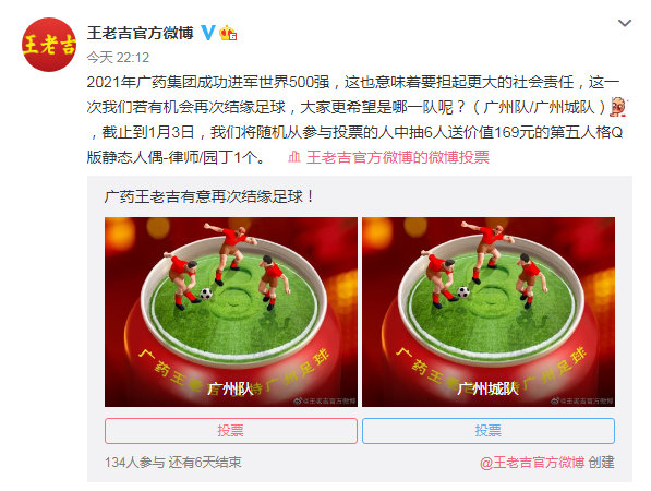 Wang Laoji, a brand of GPHL, also launched a vote in Weibo on December 28th last year to solicit the opinions of netizens on the choice between Guangzhou Team and Guangzhou City Team, which attracted about 11,000 people to vote by January 3rd, 2022.